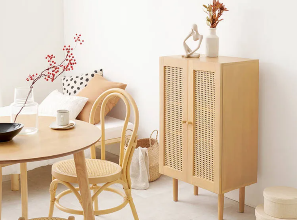 扉付きキャビネットは、生活感を隠したい方にぴったり。中には文房具や薬箱、日用品などを収納し、上部には写真立てや花瓶を飾れば、「隠す」と「飾る」を両立できます。木製タイプなら温かみがあり、モダンな部屋にも調和します。