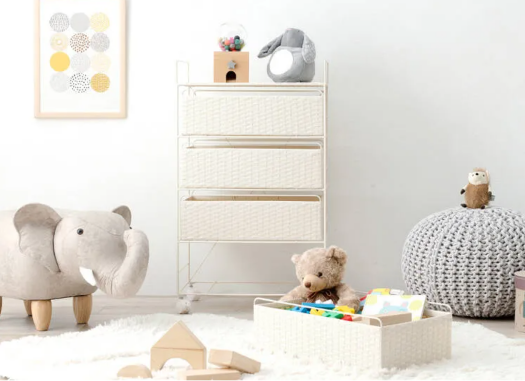 → 子どもの手が届く位置に収納を配置し、「自分で片付ける習慣」をつけましょう。バスケットやキャスター付き収納がおすすめです。